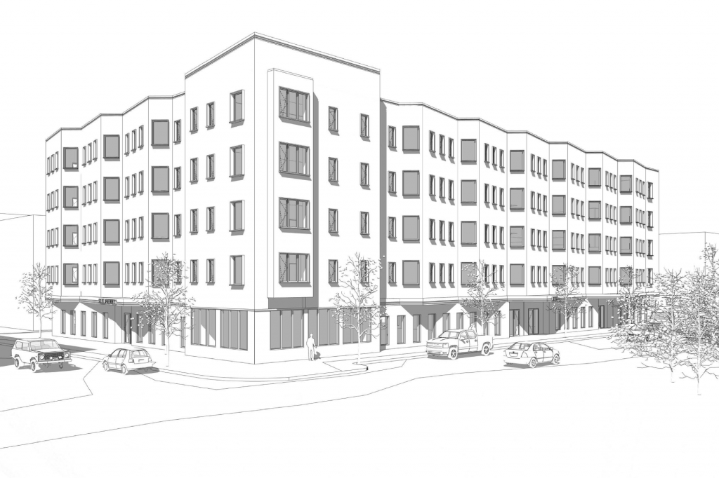 Phase 1, currently under development, includes 36 one-bedroom apartments and eight two-bedroom apartments. Phase 2 will add another 24 one-bedroom apartments and four two-bedroom apartments. When complete, the two phases will form a single cohesive five-story building with resident amenities and active ground-floor uses. Kaplan Thompson Architects is leading the design for both phases, bringing a community-centered approach to the project.