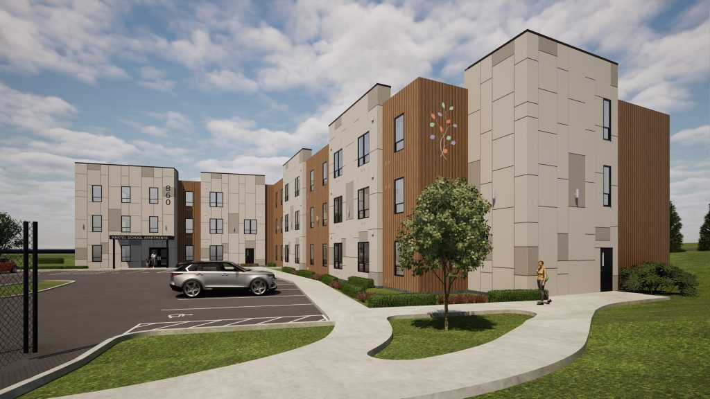 Lewiston Housing is developing a three-phase senior housing project at the former Martel School site, beginning with a 44-unit, PBV-assisted building for residents 55+ at or below 50% AMI with shared amenities, breaking ground in early 2026 for 2027 occupancy, followed by a second identical 44-unit phase starting in late 2026.